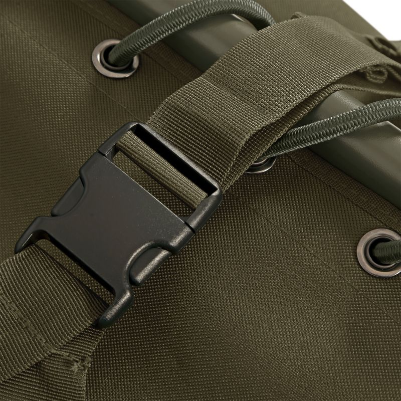Central fastening compression strap allowing you to fold away with a sleeping bag attached
