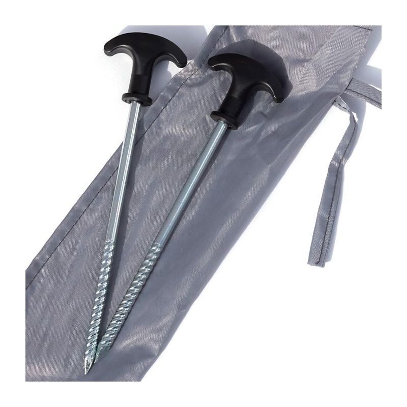 * 125cm (250cm) round canopy* 8mm ribs for added stability* D-Ring peg points* Two pegs supplied* Detachable/angled screw for pole* Grey colour ideal for sun protectio