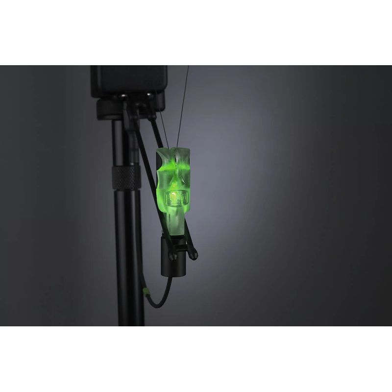 The NiteLite v.2 is a complete illuminating hanger, line clip and bite alarm attachment all in one. It performs just like a chain with the unique patented CatFlex™2 cable assembly that gives good tensile strength and allows the fine wires needed to connect to the bite alarm to be protected and encased in a flexible thin black stainless steel coil. It replicates all the Delkim alarms’ LED functions, flashing latching, brightness adjustment and Night Marking WITHOUT ADDITIONAL BATTERIES. It also has a patented self-adjusting integral magnetic line clip which makes the old style adjustable types redundant.