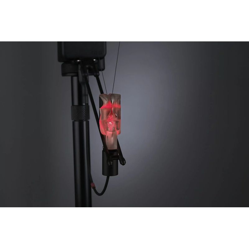 The NiteLite v.2 is a complete illuminating hanger, line clip and bite alarm attachment all in one. It performs just like a chain with the unique patented CatFlex™2 cable assembly that gives good tensile strength and allows the fine wires needed to connect to the bite alarm to be protected and encased in a flexible thin black stainless steel coil. It replicates all the Delkim alarms’ LED functions, flashing latching, brightness adjustment and Night Marking WITHOUT ADDITIONAL BATTERIES. It also has a patented self-adjusting integral magnetic line clip which makes the old style adjustable types redundant.