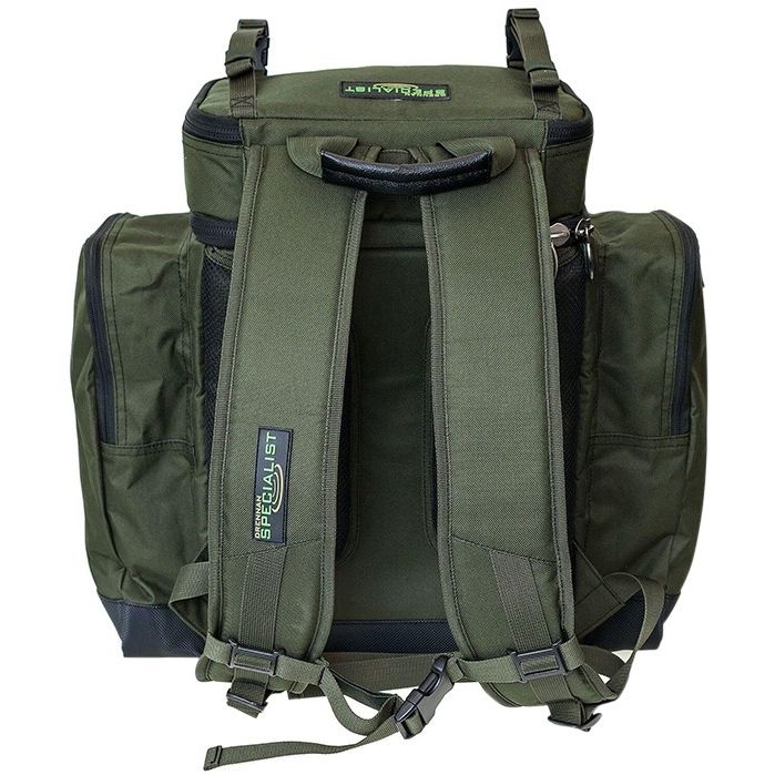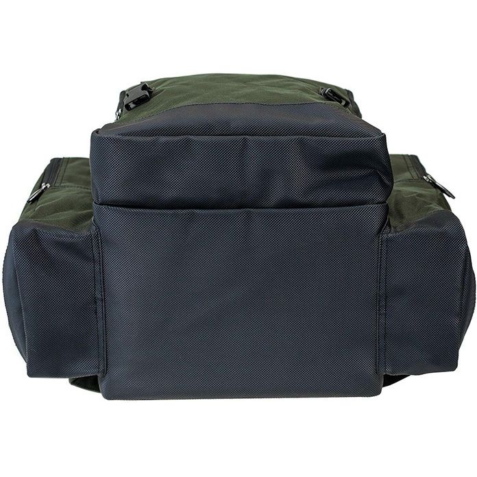 The rucksack is made from a tough and durable 600 denier fabric with a reinforced waterproof base. The bag has three external zipped pockets, along with a foil-lined top compartment which is ideal for storing bait and extra items of tackle. The inside of the bag is padded and also has an internal clear zipped pocket on the bottom of the lid.