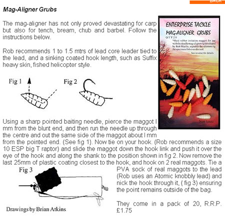 Hard rubber imitation maggot for use with the deadly mag-aligner rig developed by Rob Maylin, arguably the ultimate rig for specimen fish ever devised.