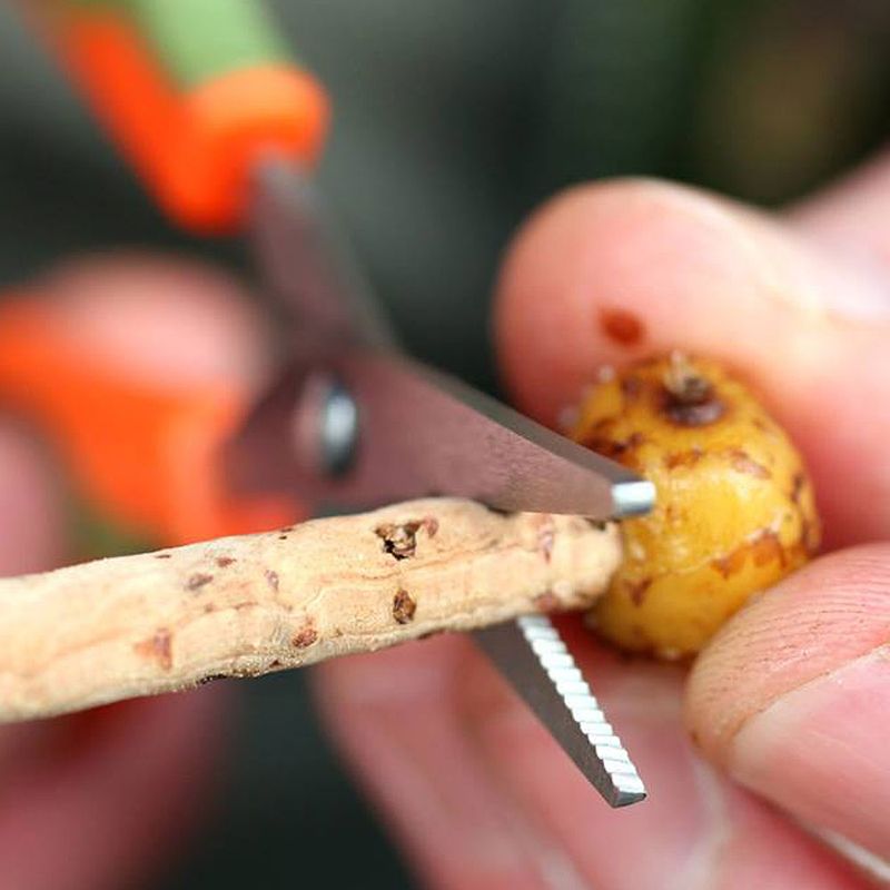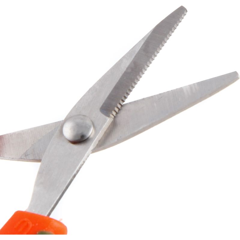 One of the blades has a serrated edge which is perfect for gripping (without the need to hold under tension) and providing a clean cut on thicker materials such as stiff rig bristle filament.