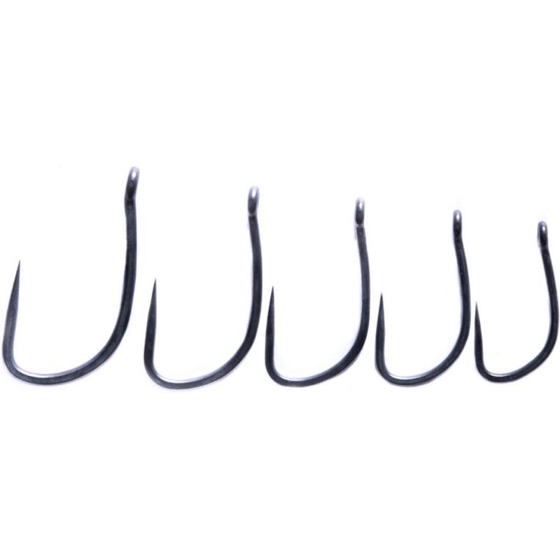 The medium length shank terminates in a subtly out-turned eye, perfect for tying the knotless knot with stiff hook link materials such as bristle filament. On this range we have increased the eye diameter slightly so that the larger sizes can accommodate 25lb bristle filament three times through the eye.