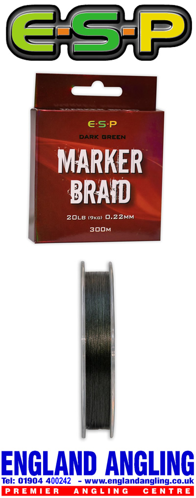 High knot strength of 20lb+ in olive green, ESP Marker braid is perfect for precise feature finding.