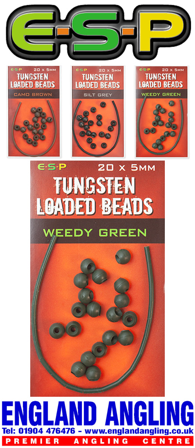 The trusty old ESP 5mm rubber beads have been a staple component for helicopter and chod set ups on leadcore since 1999 and now they have been given the heavyweight tungsten treatment with the introduction of Tungsten Loaded beads.