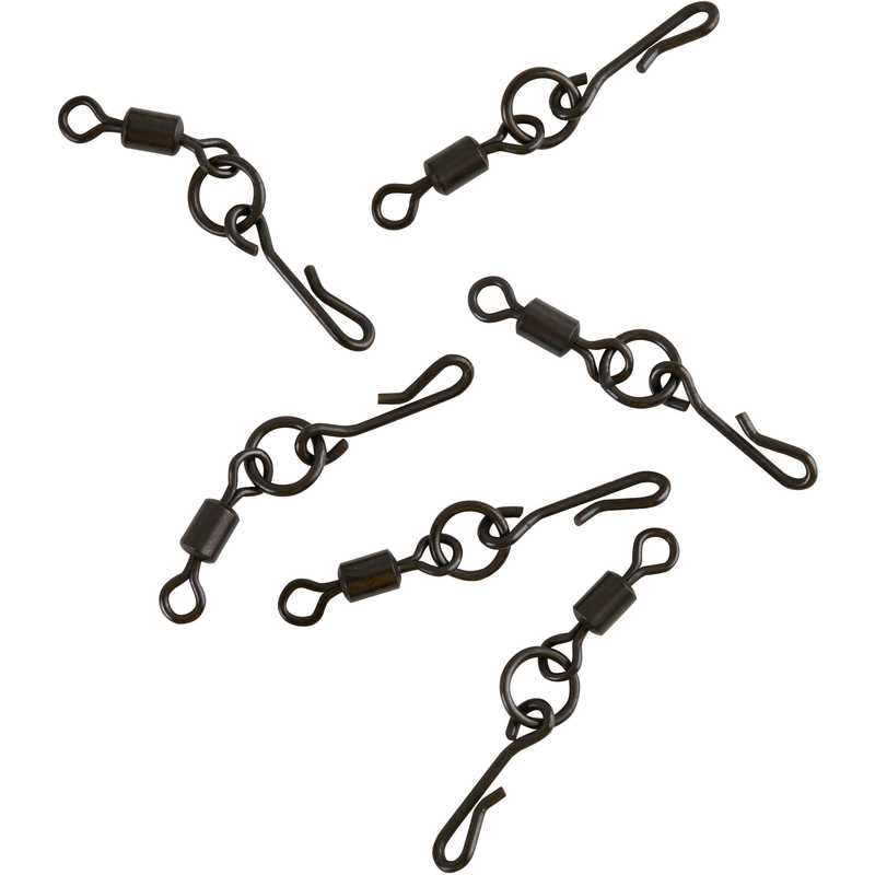 Non reflective, smoothly rotating swivels designed for use with stiff hooklinks to aid rig movement and help them sit correctly on the lake bed whilst enabling the rig to be quickly changed. Ideal for use when threading PVA sticks or bags onto the hooklink.