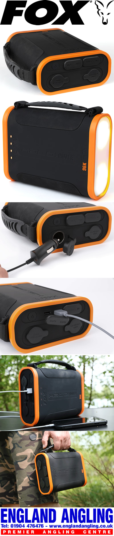 * Moulded feet in side of power pack allows it to sit on its side on a bivvy table to save space