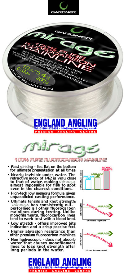 GARDNER Mirage 100m Spool 100% Fluorocarbon Mainline