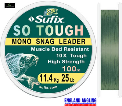The ultimate super strong mono snag leader, So Tough is ten times more abrasion resistant than most other monofilaments of a similar diameter. Essential on long leaders over mussel beds and flint topped gravel bars or where cut offs have been a problem in the past. They just don't come any stronger than this. Available on 100m spools in 25lb. Colour: Green.