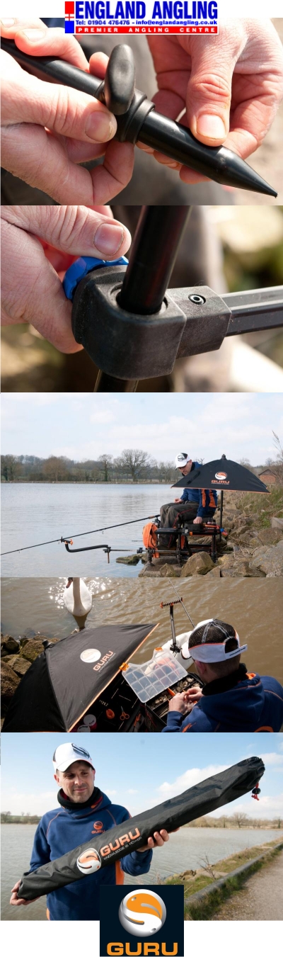 The umbrella & carry bag are manufactured from extra thick 210D material that gives superb durability and performance. It also comes complete with a detachable angle lock for optimal rock-solid positioning. Plus, unlike other similar products, it comes with 2 poles as standard - a telescopic and an accessory pole. The telescopic pole has a ground spike that can be pushed into soft terrain and is ideal when extra height is required. The 60cm accessory pole is for use with the seat box brackets and is excellent in windy conditions as it keeps the umbrella low and close to the side tray. - 90cm x 90cm Umbrella coverage - - Tie cord with velcro fastening for easy storage. -