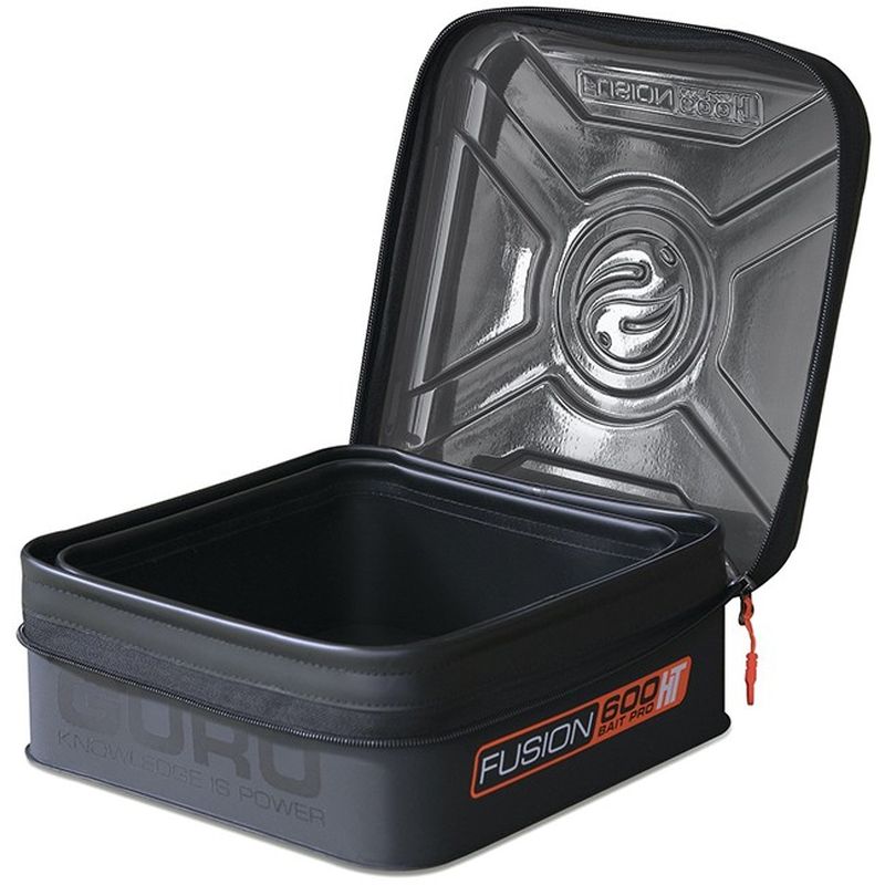 The Guru Fusion 600 Bait Pro HT are the latest EVA Fusion luggage items to join the Guru range. The main benefit to the Fusion HT Bait Pros is the unique HT (Hard Top) lid which has been designed to protect your bait from the elements. The HT lid is weighted and stays firmly in place without having to zip the lid up, particularly effective in windy conditions. The lid itself overlaps the edges of the EVA Bait Pro which means your bait will remain in perfect condition, even in extremely wet or sunny weather conditions. The Fusion 600 HT is supplied with a standard 500 Bait Pro. Constructed from an extremely durable 0.8mm EVA wipe-clean fabric material and also feature a super smooth reversed zips and the bespoke Guru zip pullers for easy access at all times.
