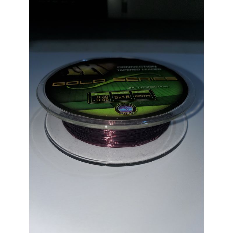 - JRC Connection Gold Series Tapered Leaders (5 x 15m lengths of 12lbs to 35lbs - 0.30mm to 0.45mm, brown) *SALE*