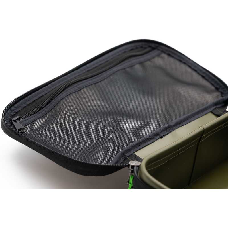 The Korda Compac offers a two- way zip, so you can easily see what you need at a glance, and the lid features a zipped, interior mesh pocket, for the items and essentials you need to have immediately to hand, or that you don’t want to risk getting caught up with the rest of your tackle in the main box.