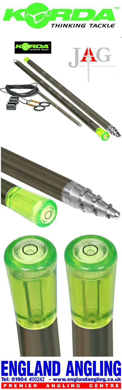 Korda have teamed up with JAG Products to precision make these sticks to the highest standard. Designed with special grooves to prevent the line from spilling off, causing the dreaded bird's nest. They also come supplied with a T-Bar, which can be used to drive the specially designed point into even the hardest of ground. Integrated spirit levels in the top of each stick allow for perfect positioning, and pop out to reveal a cavity, which accepts an isotope for night vision.