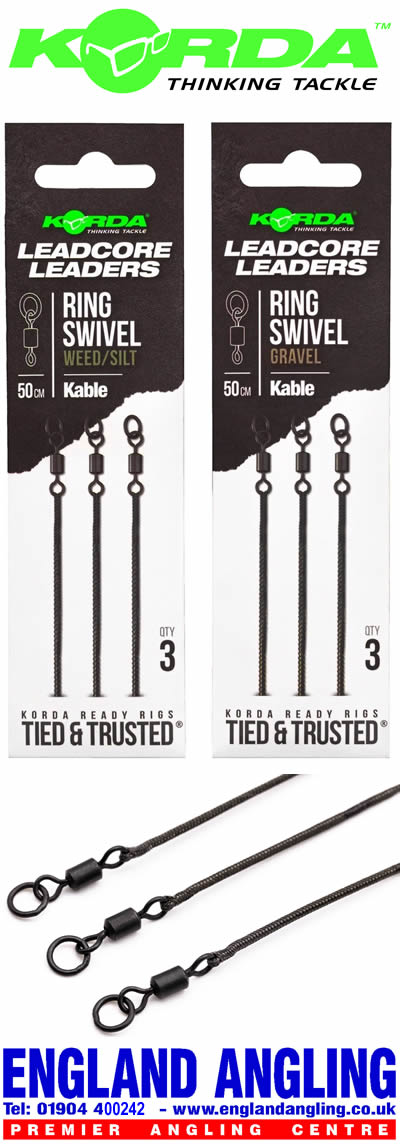 Each leader is constructed from our incredibly tough and fast-sinking Kable leadcore, with a Size 8 Ring Swivel spliced to one end of it and a spliced loop at the other end so that it can quickly be attached and detached from your main line as required. The Size 8 Ring Swivel version is extremely versatile as they can be used in conjunction with various Korda components such as Lead Clips, Inline Leads and Running Rigs, giving you the flexibility to change your approach quickly and efficiently.