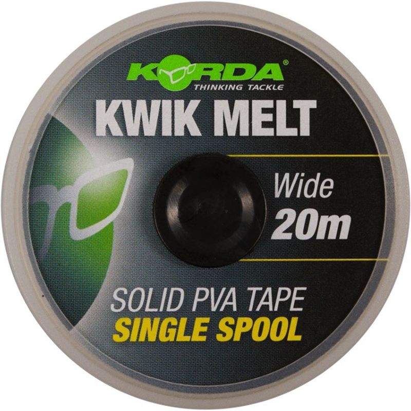 20m of Kwik-Melt PVA tape on dispenser.Korda PVA products have been specially designed for all types of presentations, ideal for tying the tops of pva bags or stringers.