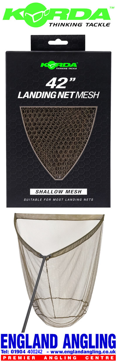 A replacement shallow net mesh compatible with most landing nets on the market, including the Korda Spring Bow.
