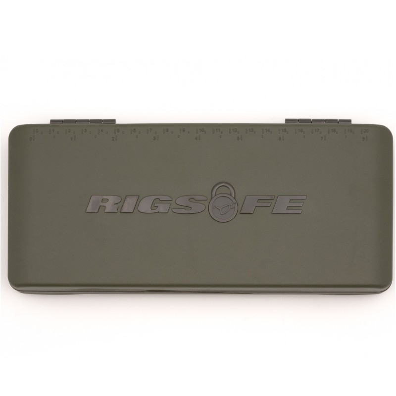 Here at Korda we have overhauled our rig-storage solutions recently, and this new Rig-Safe is the result. It’s robust and compact, yet it will hold up to 60 pre-tied rigs! As you’d expect, we’ve tweaked the design to include several neat upgrades compared to the traditional rig box. The magnetic locking system ensures that the box can’t come open in transit, and is easy to open, even in the wet and cold of a UK winter! The rigs are secured by hooking over a ridged aluminium bar that prevents tangles, and the hook end of the box is slightly recessed to protect those hook points.