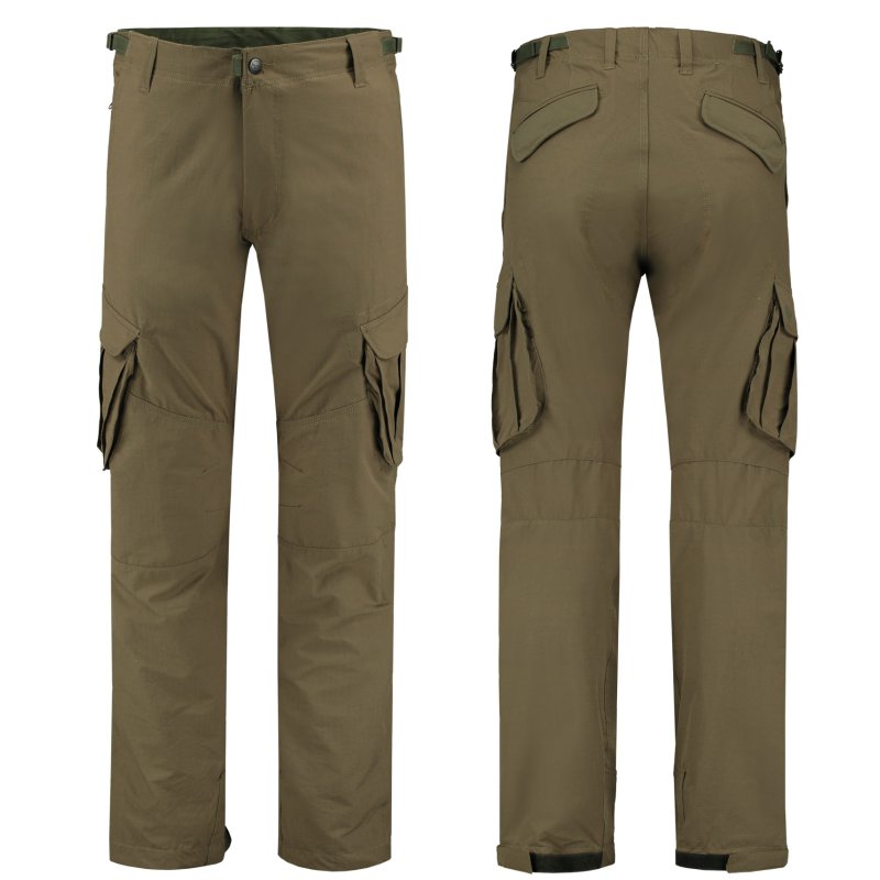 These combat-style trousers have been designed so that they are perfect for anglers. Our own design team re-modelled this classic military design, and opted for a 150gsm ripstop fabric, which is not only lightweight and extremely durable, but also dries very quickly should you get caught out in rain, or even fall in the lake! They are the perfect choice during the warmer months of the year, as this material also wicks moisture away from your skin and they are impregnated with mosquito repellent. They are secured via a button and a zip fly, plus have buckles on either side so that they can be adjusted for the perfect fit – there are also belt loops should you wish to wear one. You won’t be lacking for pockets either as there are nine in total, with two on each side – one zipped and the other open – plus a large Velcro fastened one on the side of each leg and at the rear, plus pockets within pockets to help you store everything so that you can easily find it but it won’t accidentally fall out.