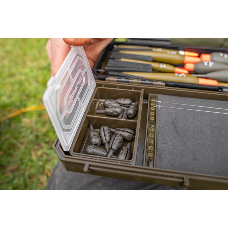 BLOX is a new tackle storage concept aimed squarely at the angling allrounder. Designed to house all you need in one highly organised place. The Float Blox has several unique features that provide a rock solid home for your floats. Floats are held neatly in position with a soft silicone slot system. On the opposing side, there are compartments for your olivettes, silicone and quick snap swivels. There's even a small rig board included.