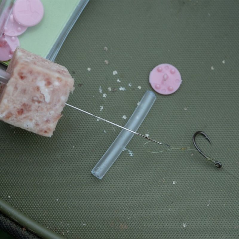 The Korum Meat Stop system has been designed to improve the durability of meat hookbaits, providing a specially designed bait stopper with a number of unique characteristics. Firstly, the large flat surface stops softer meats from being pulled off the hair by small fish - it also provides an impact shield when casting or retrieving quickly. The gripper prongs keep your bait in top condition. Used in conjunction with the clear tubes, the small hook keeper locks inside the tube. The tubing also prevents the thin hair from cutting through the sides of meat baits.