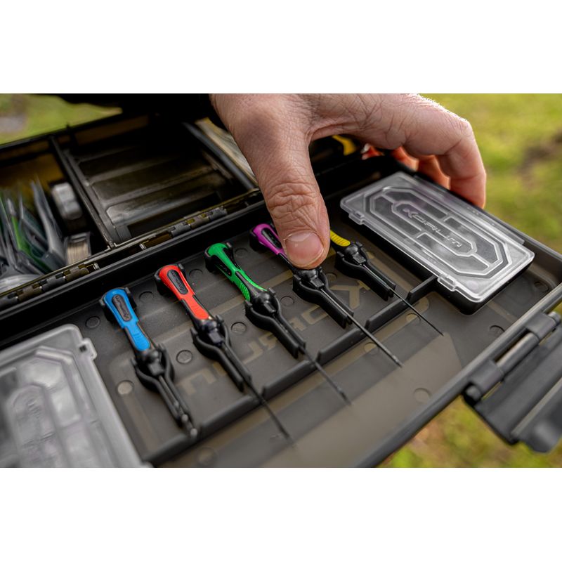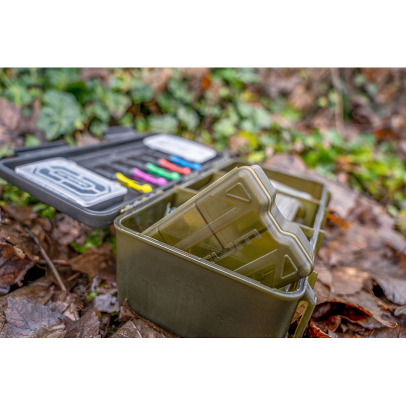 BLOX is a new tackle storage concept aimed squarely at the angling allrounder. Designed to house all you need in one highly organized place. We've carefully sized BLOX to house must-have items of end tackle, like spools of line, packets of hooks and accessories. There's the option to use the dedicated BITS BLOX if you prefer compartments, as well as being able to house terminal tackle in the lid of the box. Your Baiting Tools all click into place neatly, whilst the main box can be adjusted with dividers to suit your needs. If desired, you can also put your RIG BLOX inside, keeping all your pre-tied hook lengths safe from the elements. It's one box that does it all!