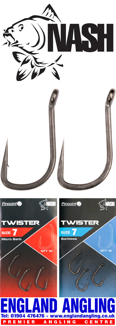 Nash Pinpoint Chod Twister Hooks utilising the latest technology in carbon steel alloy. Updated patterns and advanced manufacture – the collaboration between Marc Voosen’s Pinpoint and the famous Nash Fang hooks raises the bar with the most advanced, sharpest hook range yet. Marc’s experience has helped develop the new Nash Pinpoint range utilising the latest technology in carbon steel alloys, CARBIDE 617, resulting in hooks up to 50% stronger yet actually lighter than the already leading Nash patterns. Point design and penetration is what you would expect from Pinpoint – the sharpest available. Along with advancing worldwide classics such as the Twister and Fangs Kevin Nash has used the opportunity to add newpatterns guaranteed to be firmly on the big carp hunter’s radar.