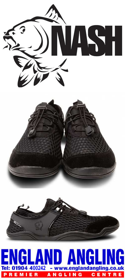 Based on functional aquatic sports footwear design the Water Shoe protects feet when wading but the 3D mesh fabric allows water to drain when they are wet and air to circulate when they are drying – keeping you cool and comfortable at all times. The breathable sole also prevents heat build up to improve comfort and hygiene. Elasticated stretch fit with elasticated cord and toggle adjustment. Black finish with understated Nash styling.
