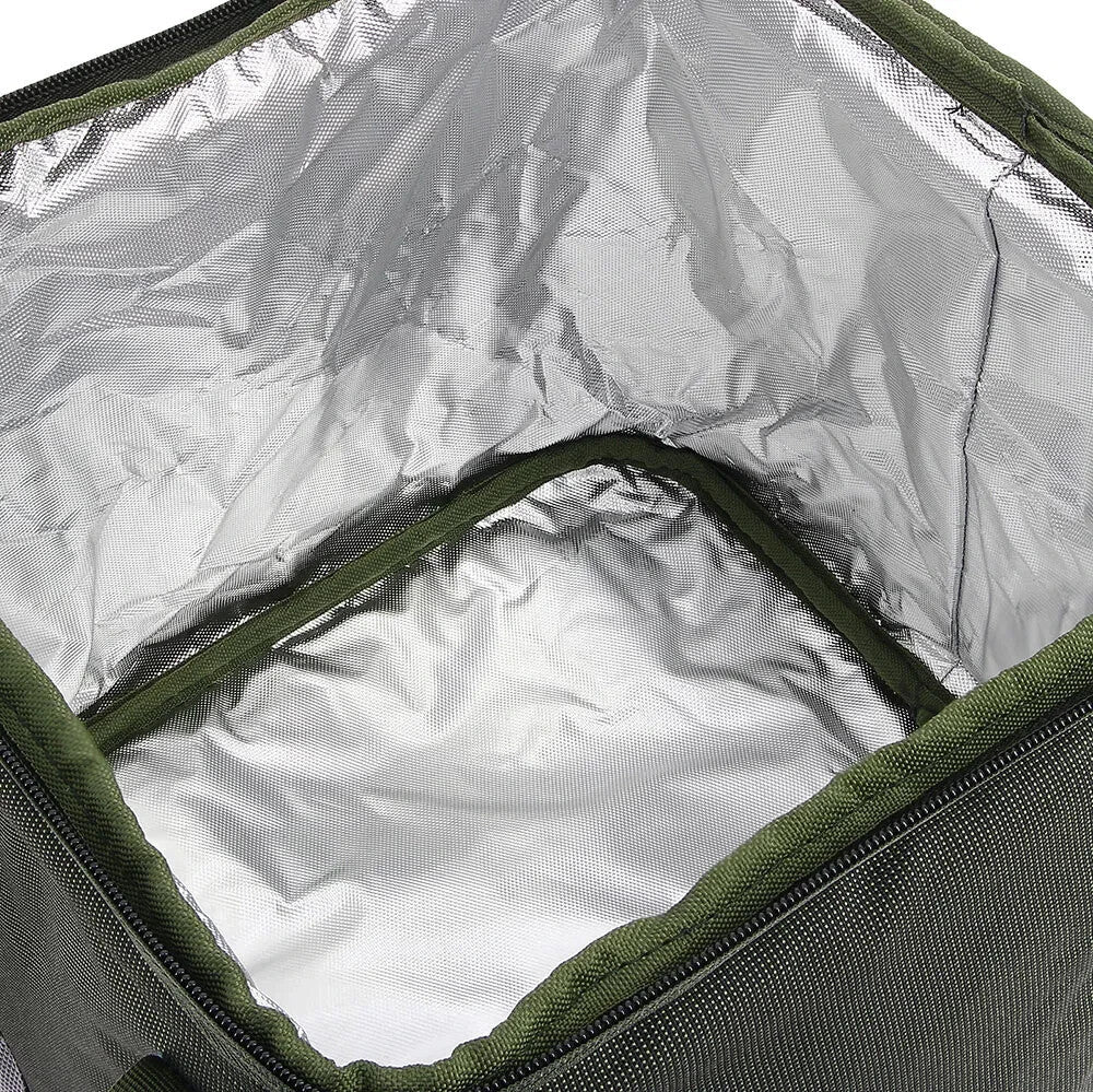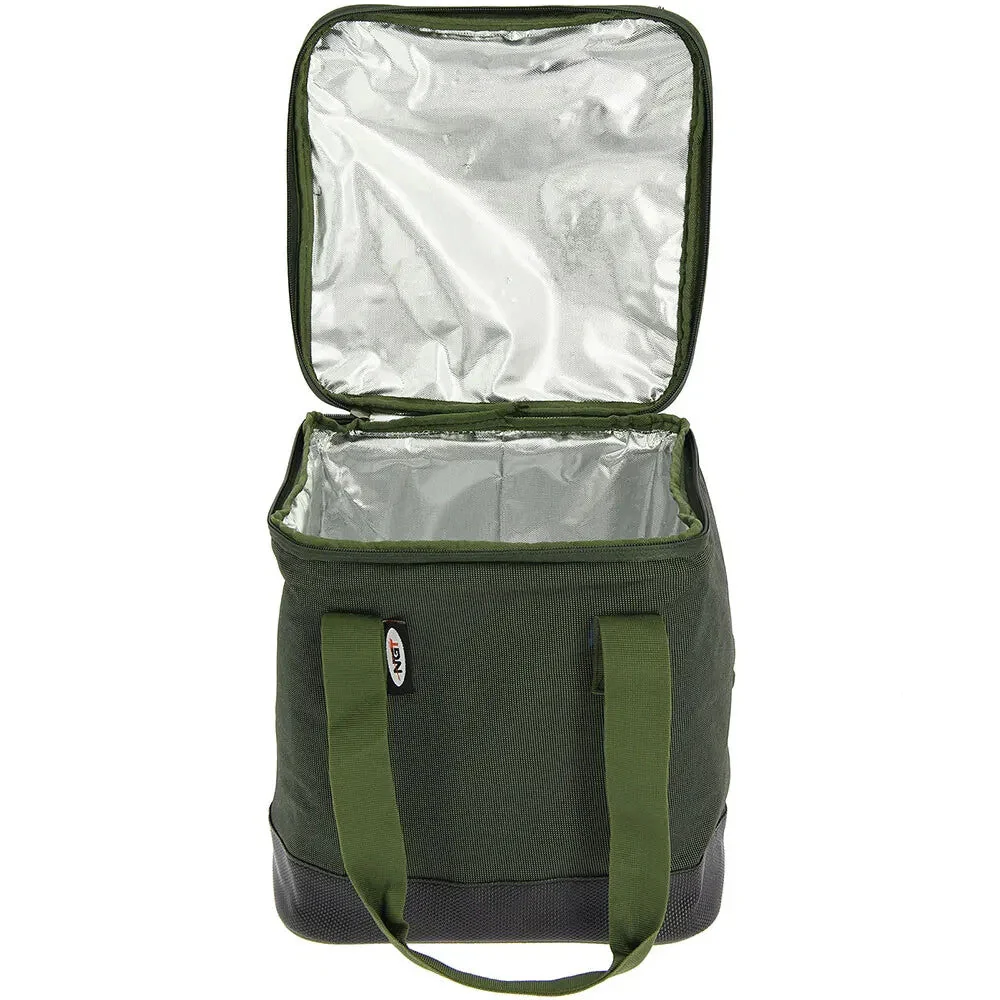 A practical insulated square bait bin designed for storing particles, boilies and pellets on the bank. Finished in two‑tone green, it features twin carry handles and a zip‑up top with self‑sealing zips to help keep contents protected. Folds down easily when not in use for compact storage.