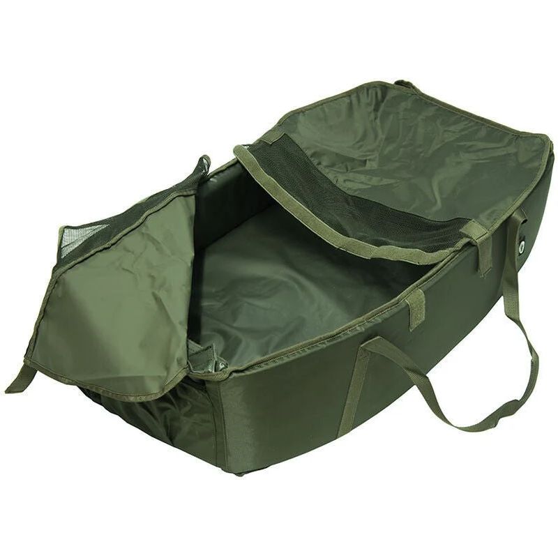 A wide, well‑padded and fish‑friendly floor cradle designed to provide maximum protection during unhooking and photo taking. Built from soft 210D PVC waterproof material, it combines a rigid outer structure with a very soft inner mat, plus a detachable foam base for superb cushioning. The folding side system adds security and helps keep fish safely contained.
