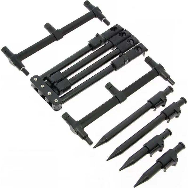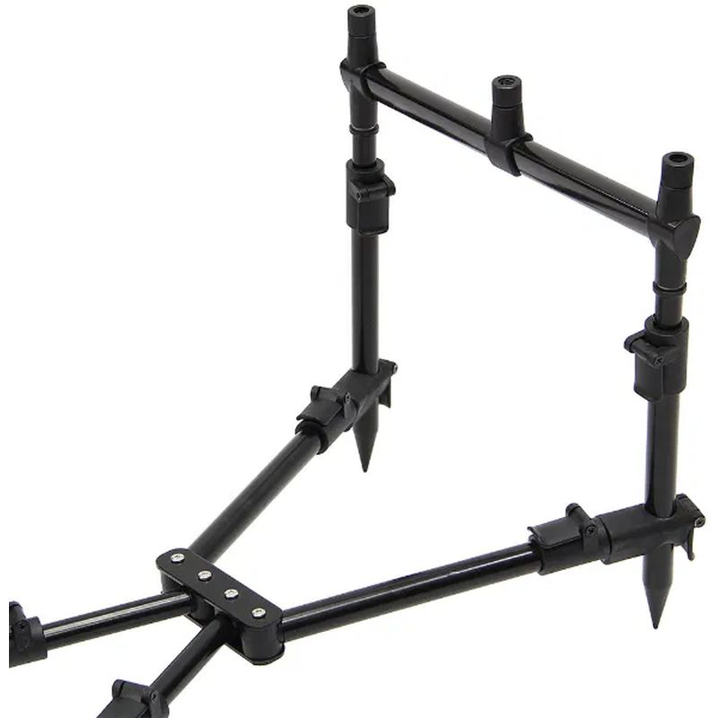 A compact and lightweight 3 rod pod that comes with a pair of small and medium bank sticks. This allows you to fish close to the ground or with rods raised into the air. The length and height are adjustable and it can accommodate up to three rods. It also comes complete with a case.