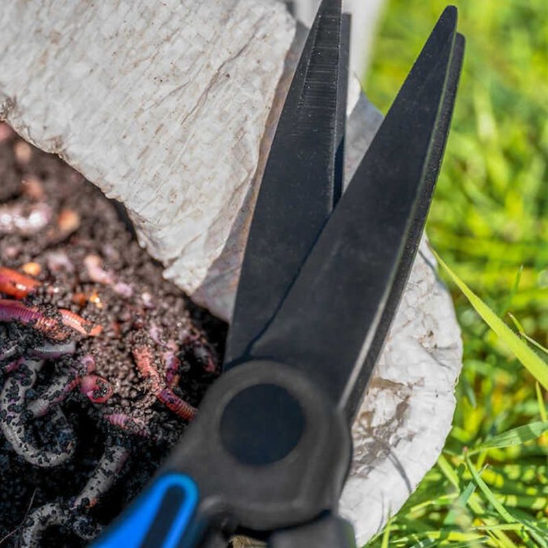 A razor-sharp double-bladed set of scissors designed to cut through worms with ease! The blades are manufactured from super sharp stainless steel with a titanium coating, providing a clean effortless cut.* Soft touch handles for comfort during use* Super sharp stainless steel blades with titanium coating* Double blade design for optimum cutting