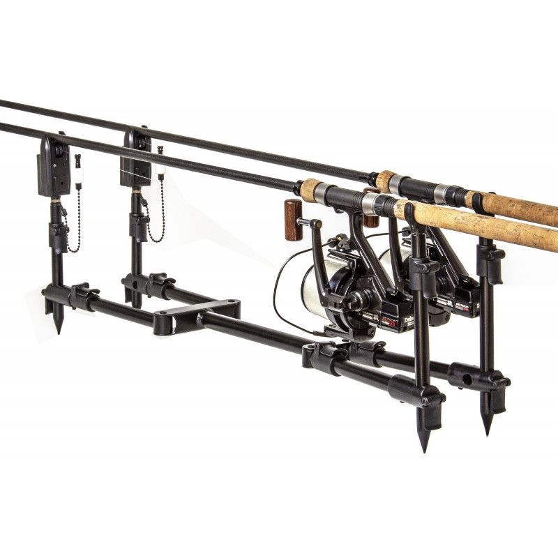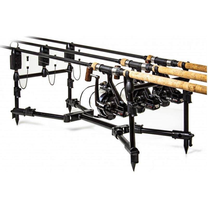 The Saber Compact Supra Pod delivers highly transportable sturdy, dependable support to your 2 or 3 rod set-up. Supplied complete with 3 Rod Buzzer Bars, yet adaptable to a 2 rod ‘single stick’ set-up, Its ultra compact design means it’s easy to transport and the Pod is fully adjustable and will adapt to all terrains via the easy-to-use cam lock levers. Plus, you can use the goalpost set-up independently of the Pod chassis for even more versatility. The Supra‘s extended length means you can get your butt rings behind your buzzers, even with 13’ rods. Plus, the bankstick adapters will accept any 16mm banksticks, such as Saber’s ‘Black Edition’ bank ware.