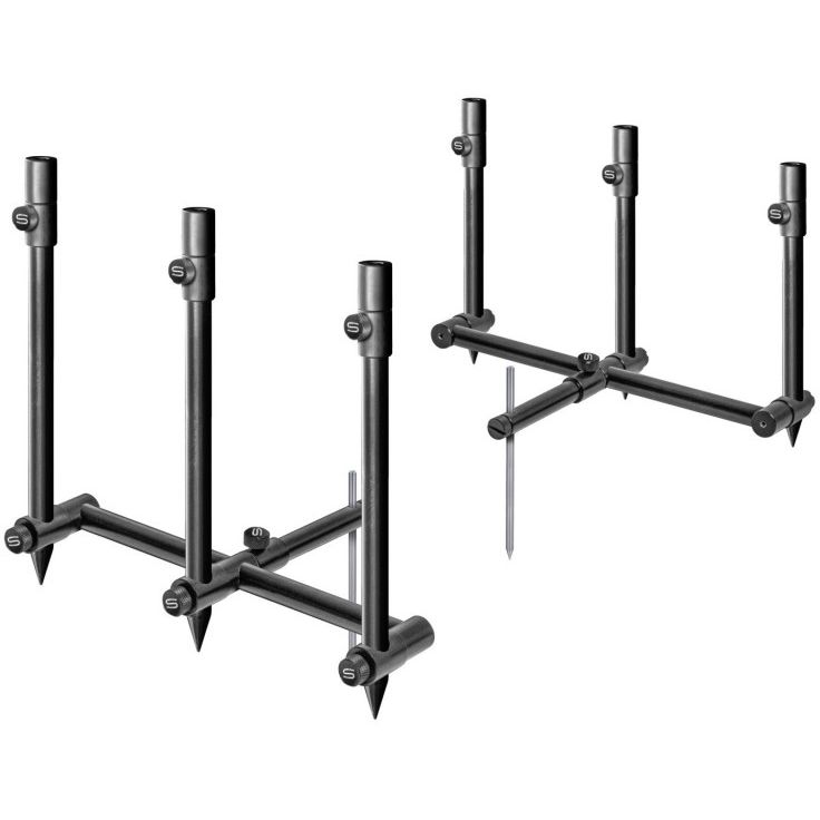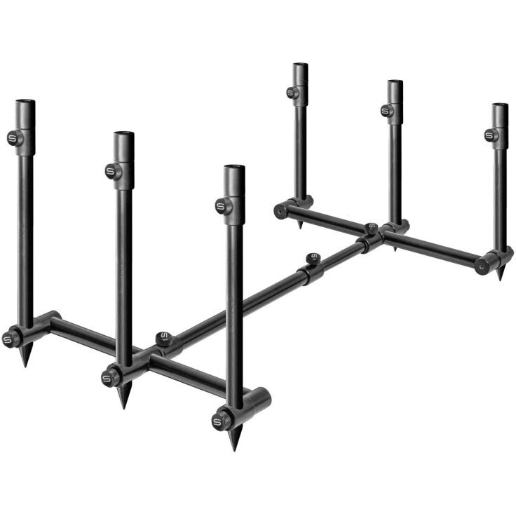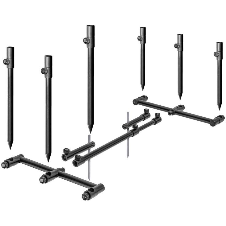 Secondly, those banksticks can be secured into a base bar to give you perfectly parallel, 3 rod front and back units which drive into the ground with one adjustable pin to provide a totally flexible 3 rod set up.
