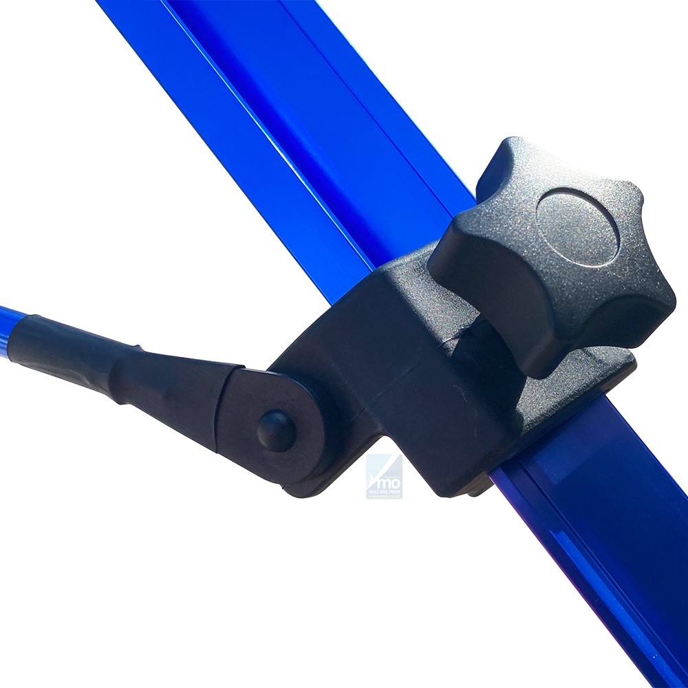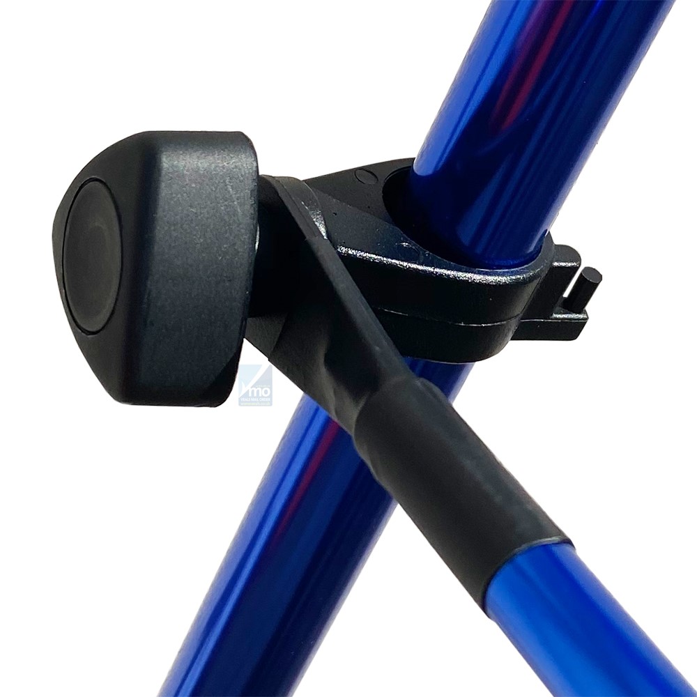 * Round section telescopic legs with neat click-lock adjusting mechanisms. Both legs clip to main bar for storage.