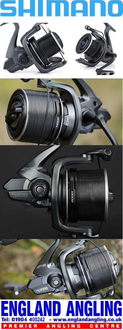 The use of CI4+ delivers a substantial weight saving on the compact Ultegra body making rod speed easier to generate when distance casting. To further increase casting performance the Ultegra uses 2 Speed Slow Oscillation line lay and an AR-C spool fitted with the new Hi-Speed Drag mechanism. Cold Forged HAGANE gearing and X-Ship produce powerful winding performance and 5 Stainless A-RB bearings plus a Shimano Roller bearing deliver supreme smoothness. The reel is protected according to Shimano's latest innovation X-Protect which will guarantee to protect the reel's inner parts against intrusion from water and dirt. The G Free Body in combination with the Parallel Body will help the angler to achieve long and accurate cast without unnecessary fatigue throughout the day. The new Ultegra CI4+ has a very compact body design which contributes to the feel of a compact and lightweight big pit reel.