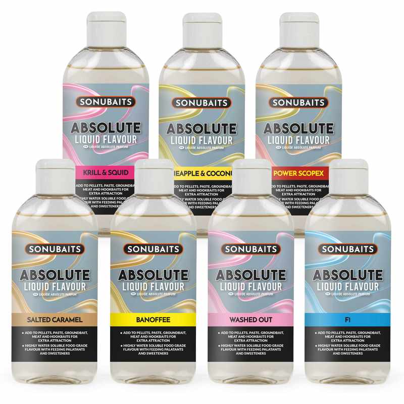 High quality liquid flavours perfect for enhancing your feed and hookbaits including groundbait, pellets and hookbaits such as expanders and Band’Ums. No added colours ensure our Absolute Liquid Flavours offer absolute flavour without changing other attributes of your bait. Supplied in a convenient bottle with click cap squirty lid. Available in nine great flavours including the NEW Salted Caramel version.