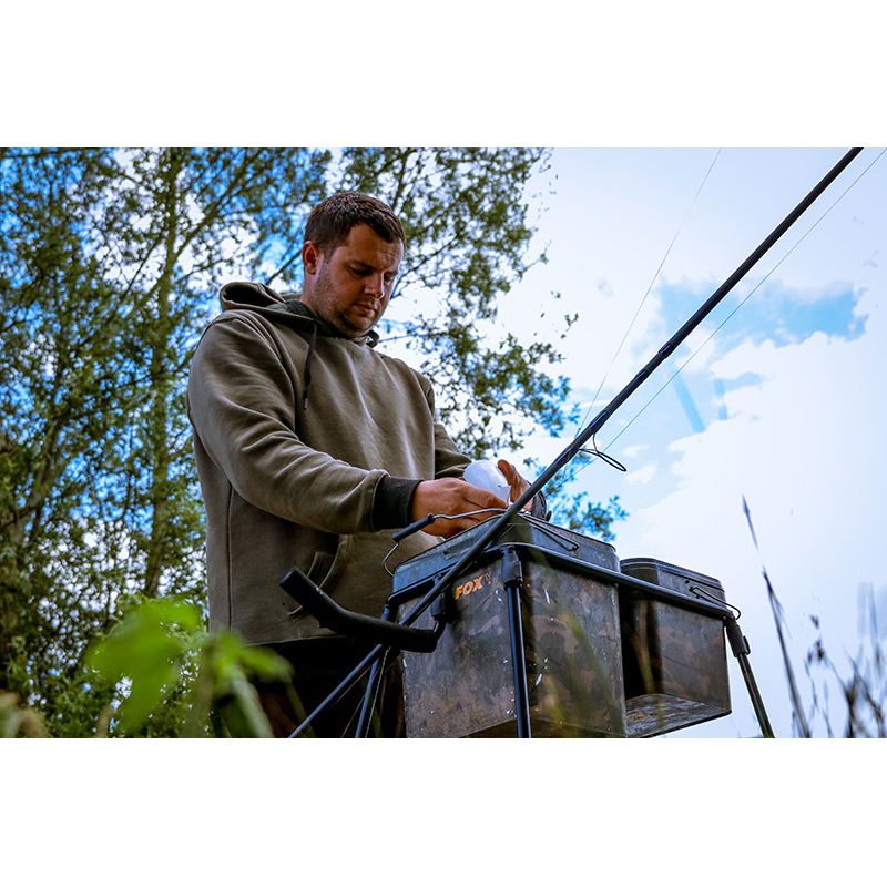 Compact all in one design that holds your bait bucket at the perfect height and saves you bending over to refill your Spomb or Fox Impact Spod* Quick erect cam Lokk system* Integrated padded rod rest* Ideally suited for 10 and 17 litre square buckets* Supplied with handy carry bagBuckets etc not included