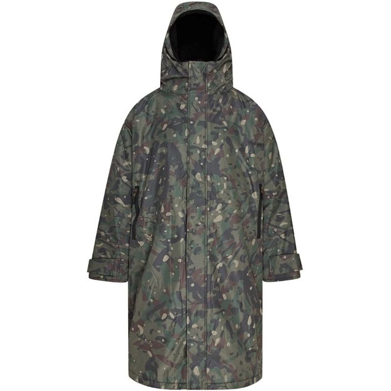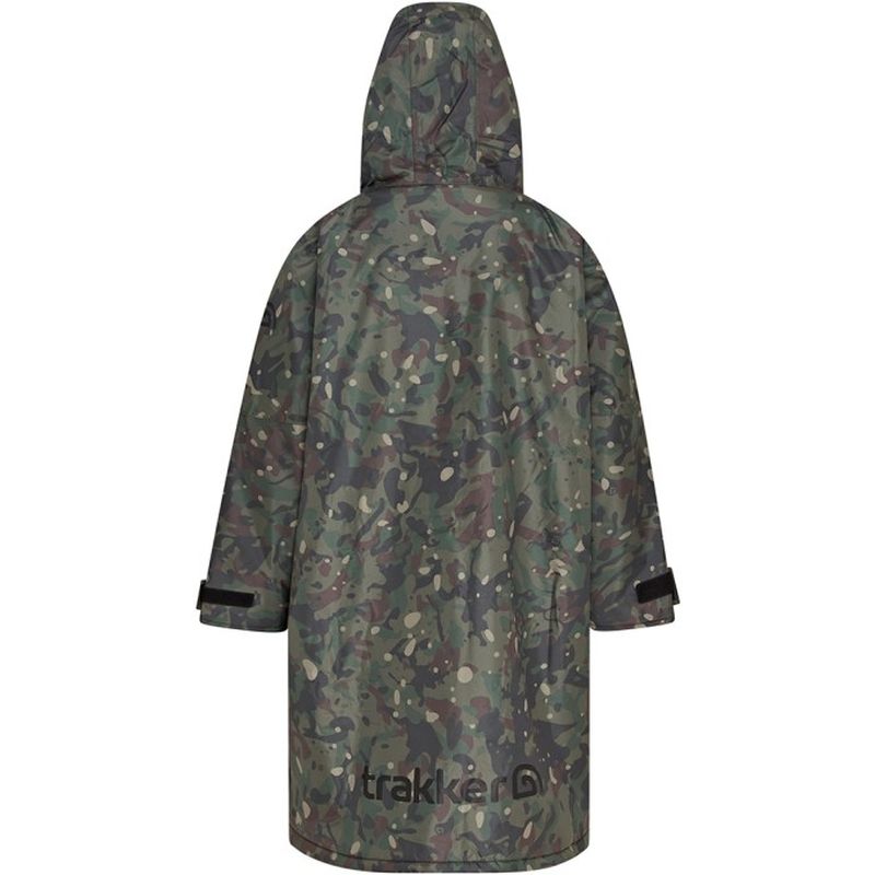 The Trakker CR Camo Robe is crafted from a highly waterproof 5,000mm hydrostatic head outer with fully taped seams; this robe ensures maximum protection against the elements. Zipped fleece-lined hand warmer pockets and the super thick sherpa fleece lining provide exceptional insulation. The Sherpa fleece-lined hood offers additional warmth and protection, while adjustable cuffs ensure a snug and comfortable fit.