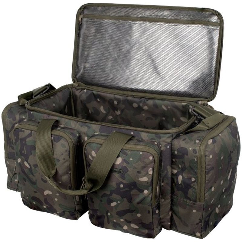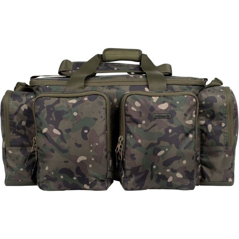 The Trakker NXC Pro Carryalls are available in three sizes, Medium, Large and XL. They all boast the same pro features but offer different dimensions to suit your angling needs. The large main compartment of the fishing carryall is lined and well-padded to accommodate and protect your gear in transit. Heavy-duty dual zips are present on the main compartment and all external pockets. The stiffened main compartment lid ensures the carryalls keep their shape and form when the contents inside has been removed. The lid of the carp fishing bag can be used as a bivvy table saving space inside your shelter. Internally there is a large zipped heavy-duty mesh pocket on the underside of the lid. We have increased to side pocket depth to 10cm each side allowing bulky items to be stored and free up internal space in the main compartment for other essential gear. There’s a further two large zipped front pockets and large single rear zipped pocket. The capacity is huge on whichever size you feel suits your angling needs. The NXC Pro Carryalls all have Neoprene grab handles for easy lifting, conventional Neoprene Velcro carry handles and a removable adjustable Neoprene shoulder strap. Whichever way you transport the carryalls you’ll be sure that comfort is always there. The rear of the fishing bag features two webbing loops, which offer an alternate shoulder strap attachment. This allows the shoulder strap to be used to secure the fishing bag onto the frame of a barrow or attach to other gear when loading boats for transporting. The Pro Carryalls all have hard-wearing PVC waterproof bases to ensure the contents are protected in the worst conditions.
